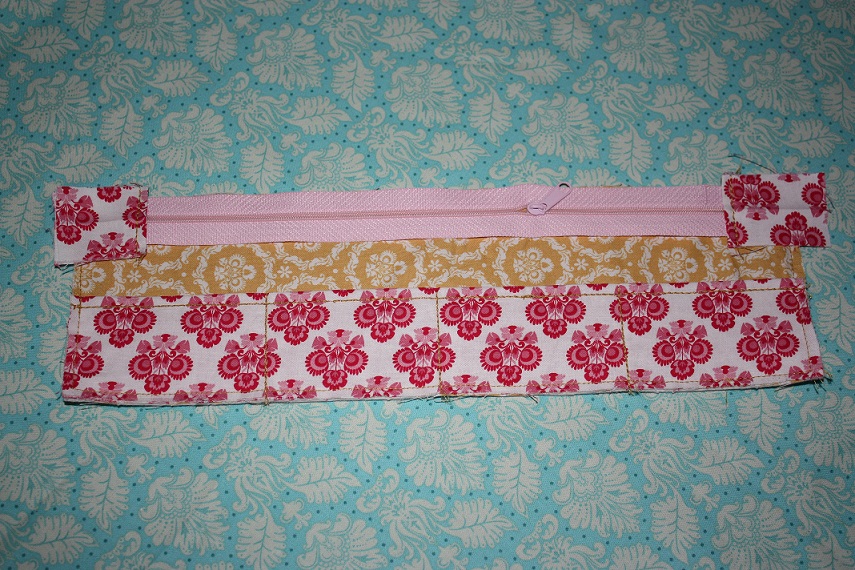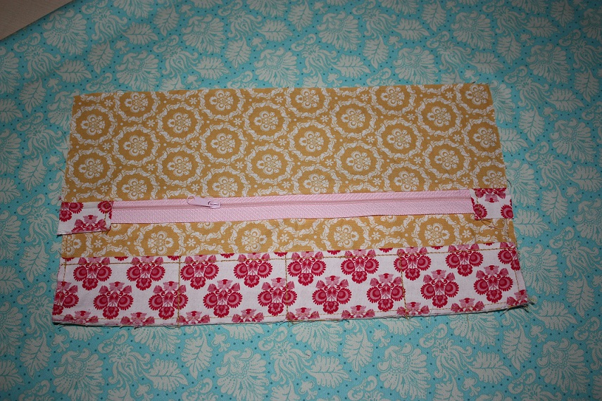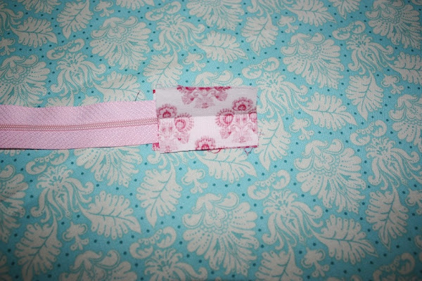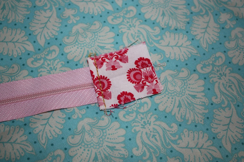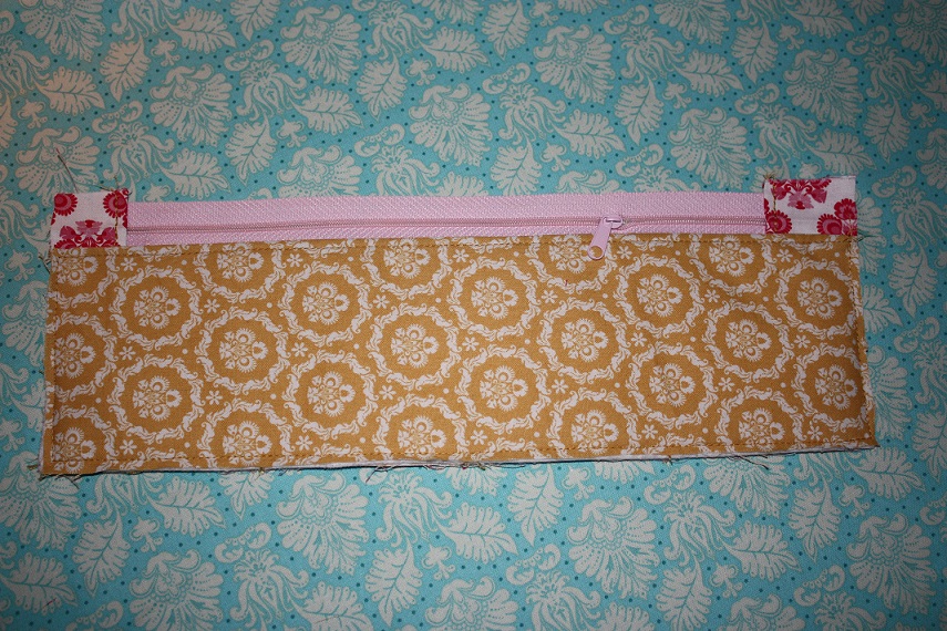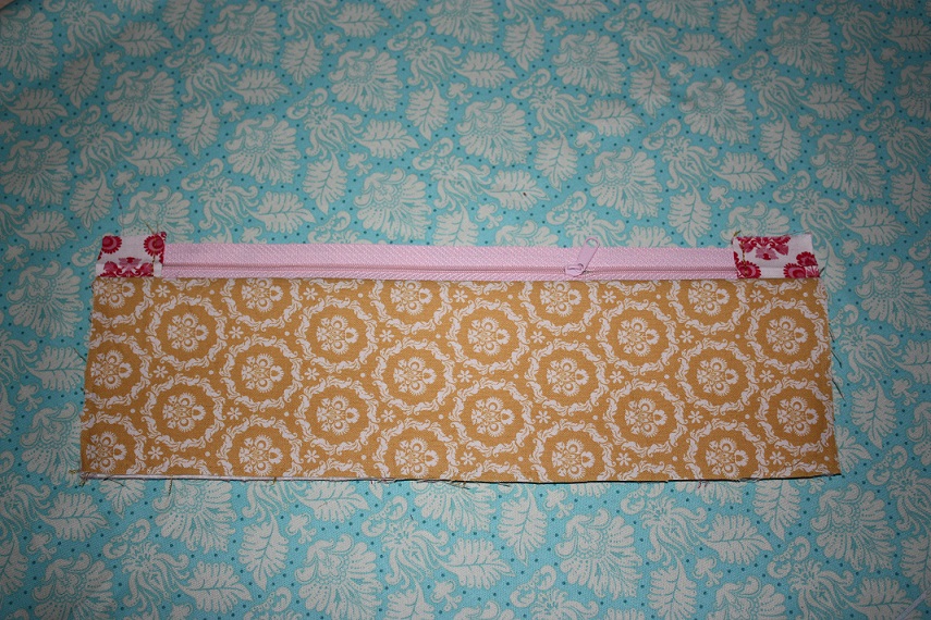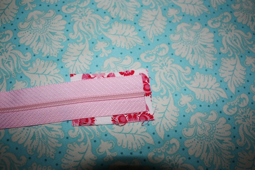 A continuación, un segundo lado, derecho de la tela colocada en la cremallera hacia el interior.
