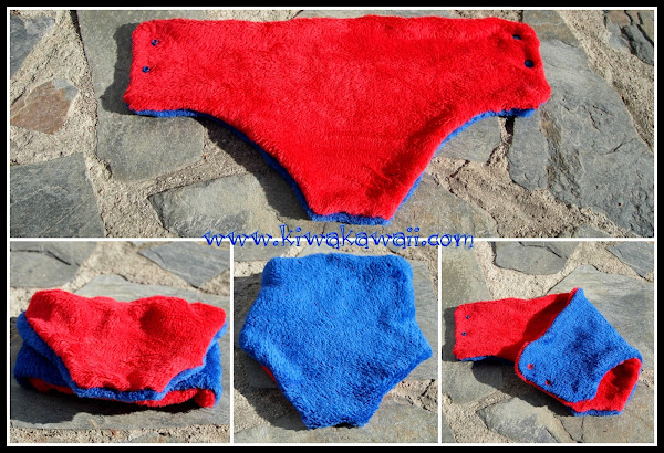 Lo he cosido con coralina en azul y rojo (Cal Joan), con los snaps (snapeando) también en esos colores, pero encarando los derechos y luego dando la vuelta en lugar de con un ribete alrededor como indica el patrón. Qué manía tengo con ir a mi bola, seguro que hubiera quedado mucho mejor tal y como dice Ottobre...