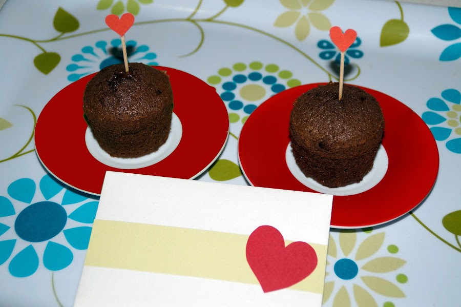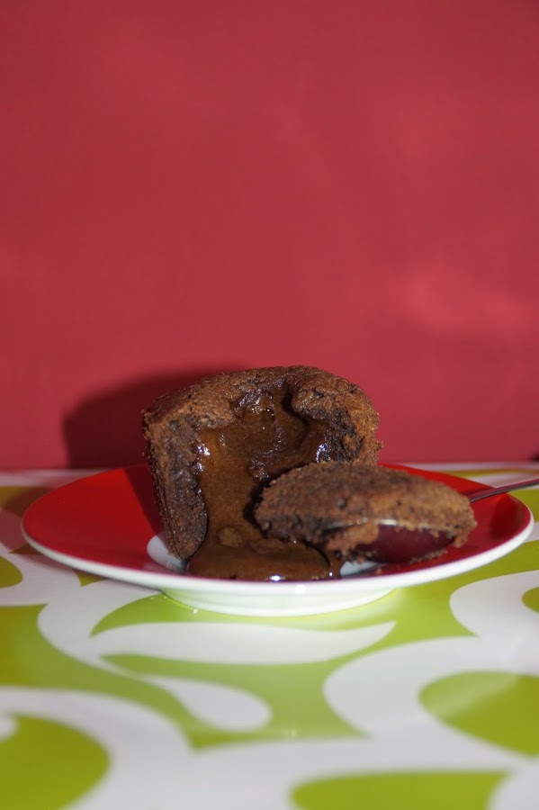 Para los que no sepáis que es en realidad un coulant de chocolate, os diré que si así sin tocar ya tienen buena pinta... cuando le das la primera cucharada, es una locura!! jaja porque por supuesto, por dentro tienen aún más chocolate, y en este caso... derretido!! ñam ñam ñam :D