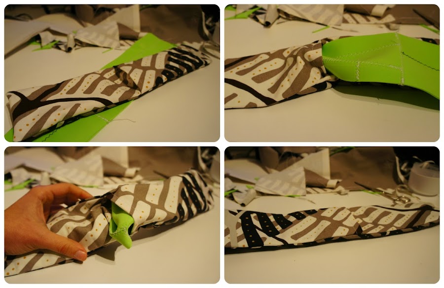 Cut the fabric and sew it, remeber that we´ll have to introduce the foam plank later!!