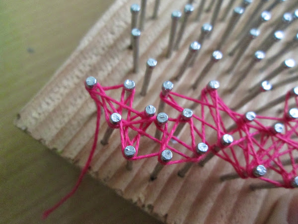 Ata el cabo del hilo a uno de los clavos en un extremo y vuelvete loc@ hilando!