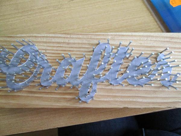 Ahora viene uno de los momentos más rollo... Tienes que clavar los clavos por el contorno de la figura teniendo muy en cuenta las curvas y ángulos sobre todo si como en mi caso son letras. Al mismo tiempo y para matar el rato puedes ir cantando: "Pablito clavó un clavito".