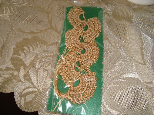 SEPARADOR DE HOJAS PARA LIBRO. TEJIDO A CROCHET CON HILO DE SEDA COLOR BEIGE.