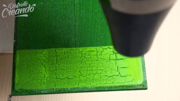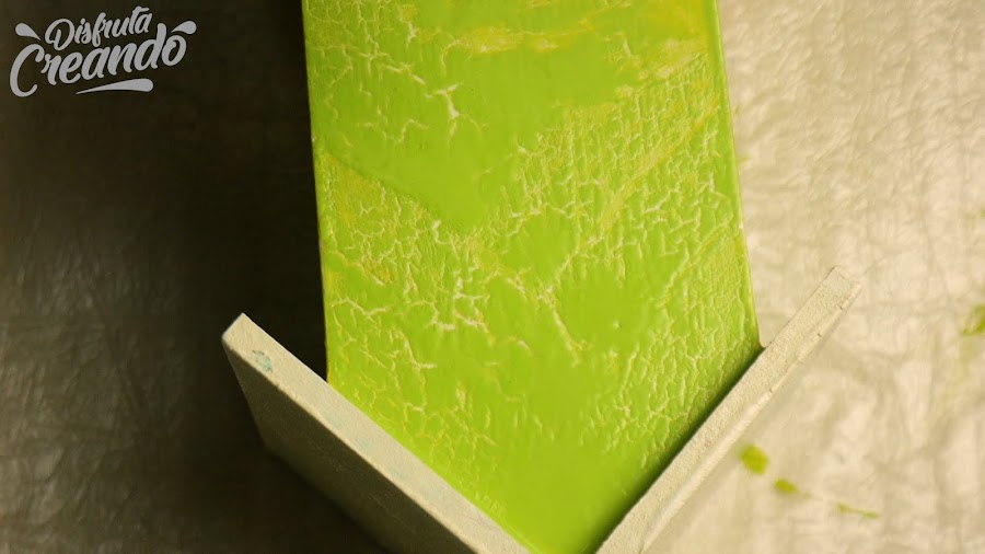 El craquelado queda fantástico con el fondo verde, se repite la diferencia de tamaño del cuarteado.