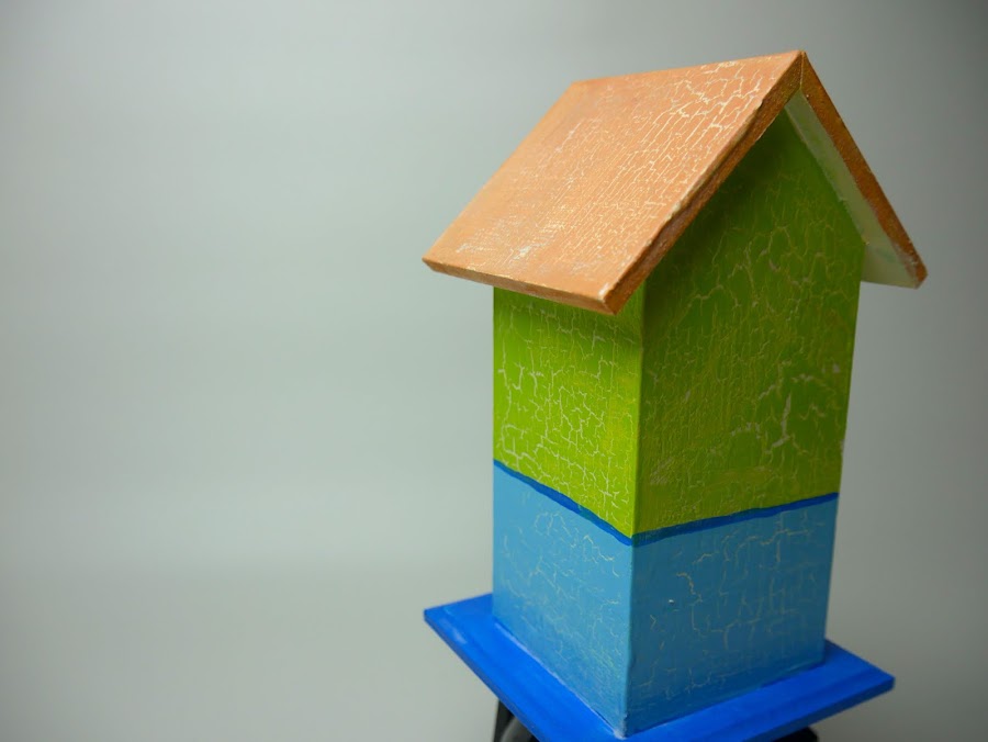 Voy a craquelar esta casita de pájaros que fue pintada muchas veces anteriormente por lo que es una buena idea para craquelar y eliminar imperfecciones.