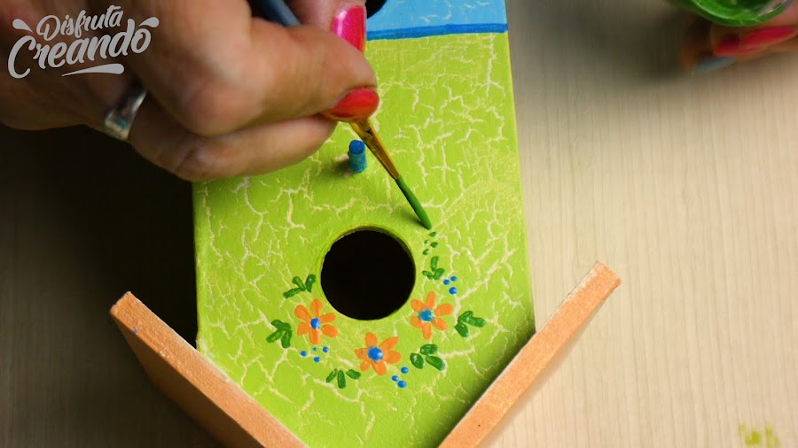 Un borde alrededor y unas florcitas en la parte superior solo con pintura acrílica de la misma que había usado.