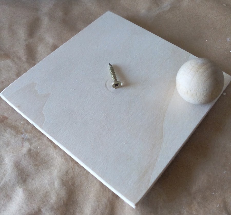 Un inciso, la tapa de la caja, no tenía pomo, así que con una bola de madera me hice uno,simplemente lijando una de las caras para ponerla plana y luego sujetándola a la tapa con un pequeño tirafondo que atornillé por la parte de abajo.