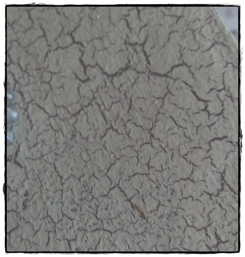 Una vez que lo tenemos seco, es hora de aplicar el otro color, en este caso el color piedra, un color mas clarito, que se romperá al contacto con el craquelador y dejará ver entre las grietas el color mas oscuro.Hay craqueladores que hacen la grieta mas o menos grande, independientemente de la cantidad que apliqueis.