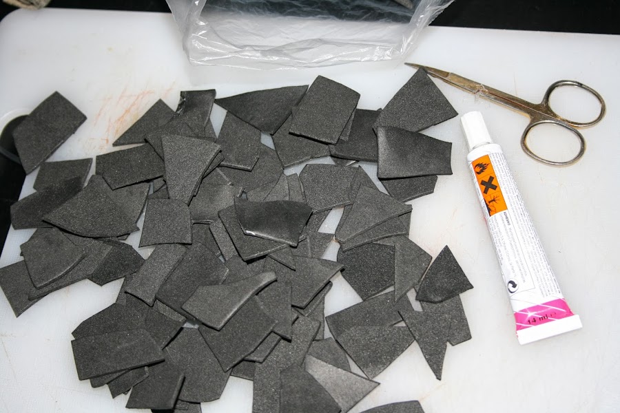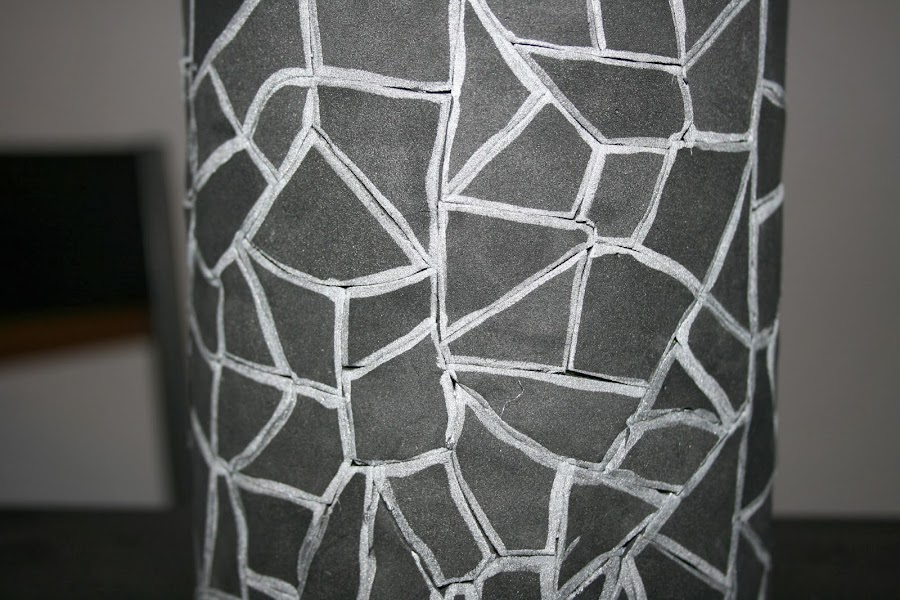 Escogí la goma eva negra, pero puede ser cualquier color. Y aunque aquí no se ve tb usé un marcador permanente en plata de punta gorda para resaltar el craquelado.