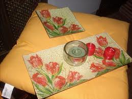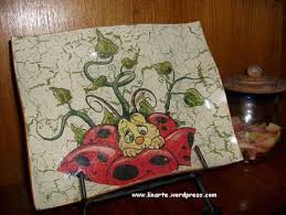 Limpia varias veces la bandeja con un trapo limpio, mojado en alcohol, cuidando que no quede suciedad adherida ni pelusas, y deja secar.Aplica varias manos de cola , dejando secar entre una capa y otra.Y entre esas capaz intercalar el motivo que queremos poner. Normalmente se utiliza papel o servilleta. Una vez seco, dar una última capa de cola y, antes de que seque completamente, pasar con el rodillo la pintura látex de modo que quede bien parejo, sin necesidad de pasar varias veces el rodillo por el mismo lugar.
