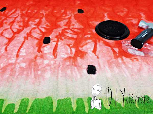 Con una tinta color negro para tela y un tampón simulando pepitas de sandía,