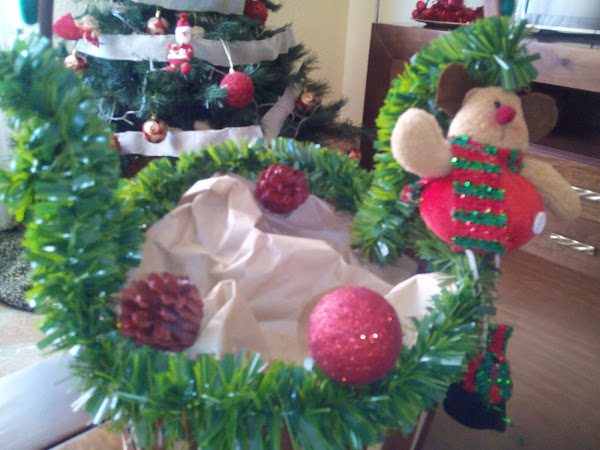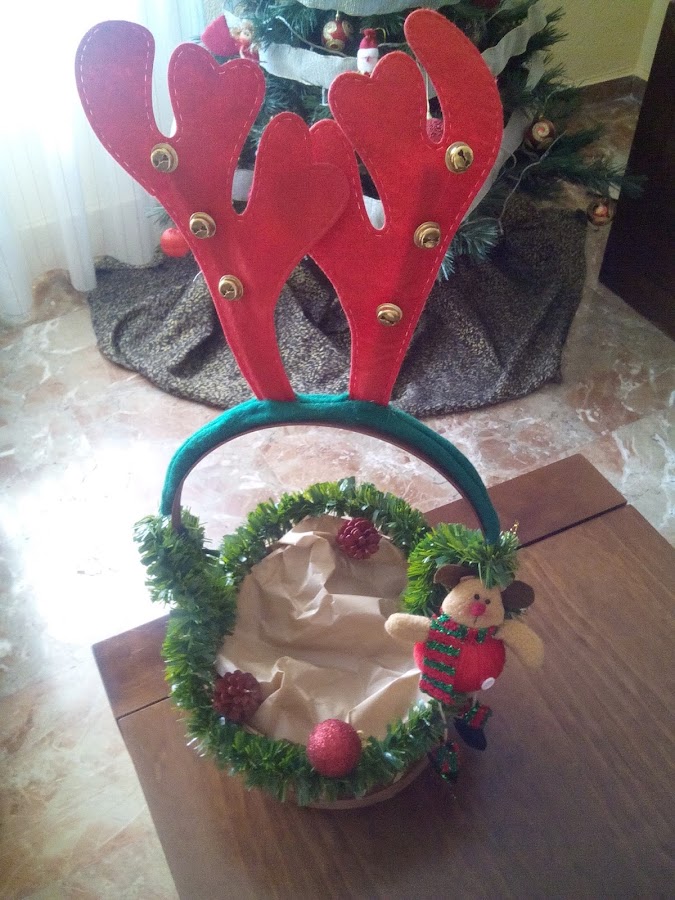 Una cesta como esta por ejemplo, navideña 100% , fácil entretenida y tan divertida como poner el belén o montar el árbol.