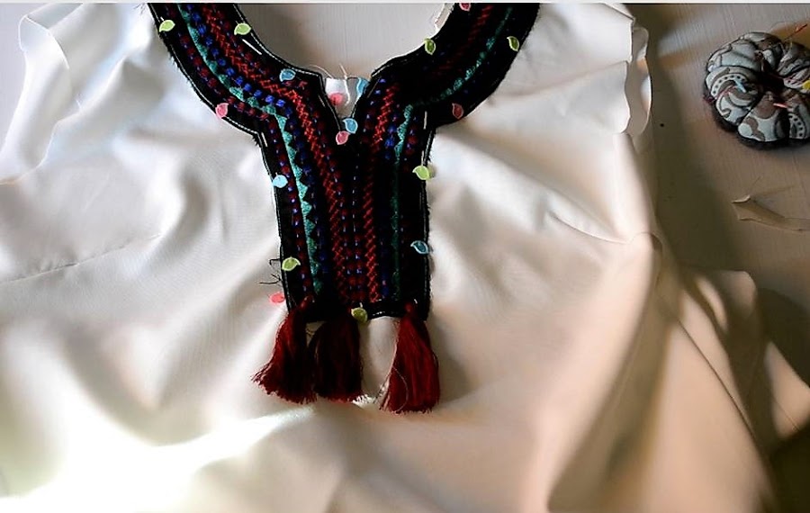 Yo voy ha realizar un vestido sencillo, en color blanco, con un patrón básico, luego aplicareñe un cuello con toque étnico de mercería noiva, que es precioso, en principio lo cogí para personalizar una camiseta blanca básica, pero luego pensé que me gustaba tanto que mejor hacia un vestido sencillo blanco, fresquito y ponía el cuello en el.