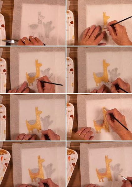 Se completa la llamita con colores, se pinta el marco y se le da unos toques de lunares con la punta del pincel.