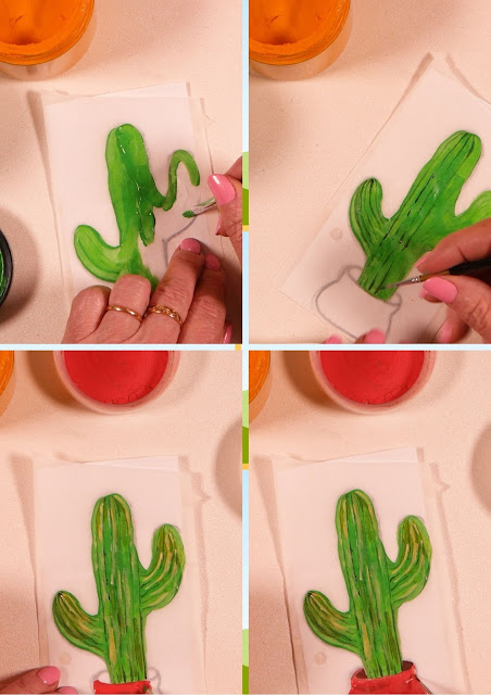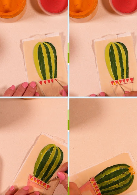 También la pintura de los cactus, realicé varios de ellos, con pintura acrílica y pintura a la tiza.