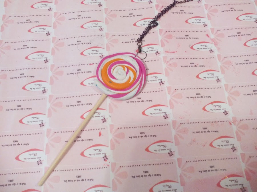 7. Colocamos la cadena, argolla y palo. Ya tenemos nuestro collar terminado.
