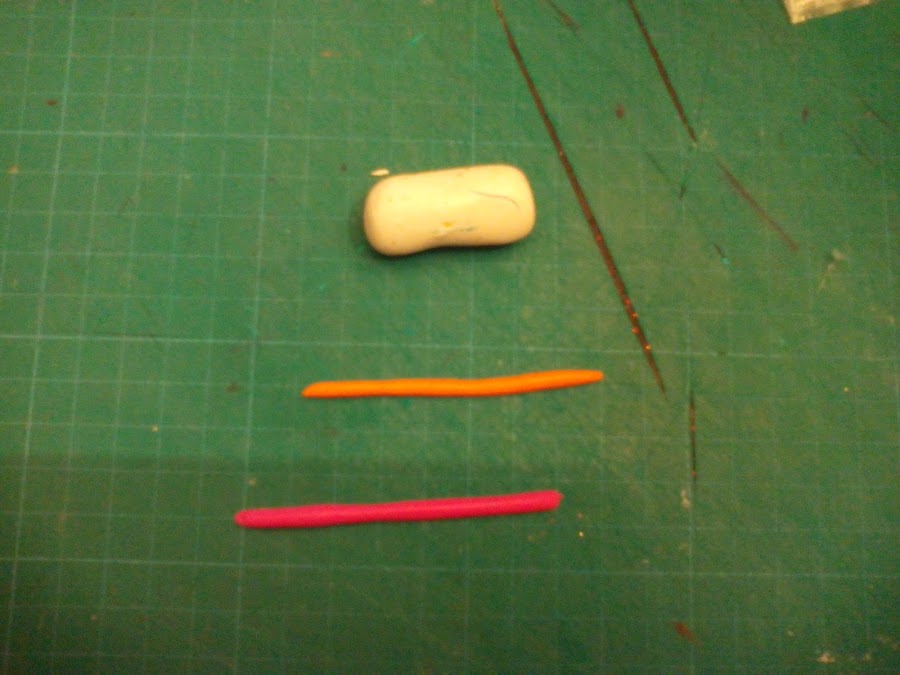 2. Cortamos un trozo y modelamos hasta hacer un "churro" con cada color.