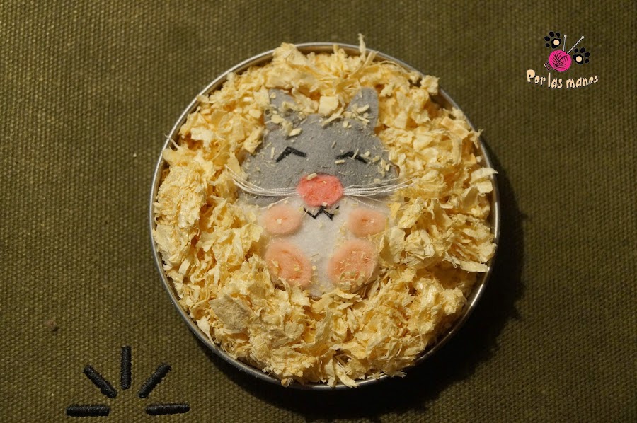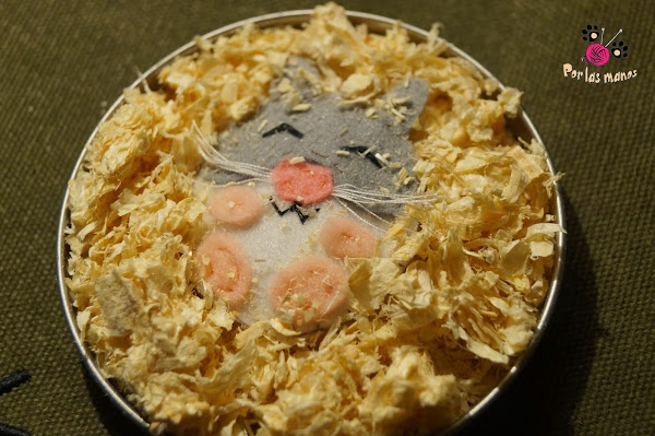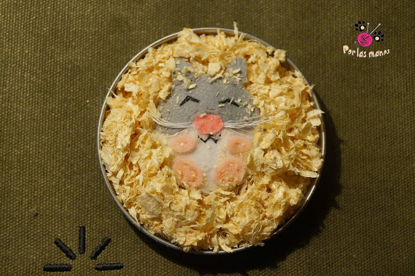 ¡Y aquí llega el mío! Como ya hice a mi perrito Toby (el amigurumi pomerania), pensé en hacer a mi hamster Parches, que murió el pasado Diciembre. Aunque sea solo un hamster, yo le tenía mucho cariño, y todavía me acuerdo de él. Así que he hecho este pequeño hamster de fieltro dormido entre virutas de madera en su honor. ¡Espero que os guste!