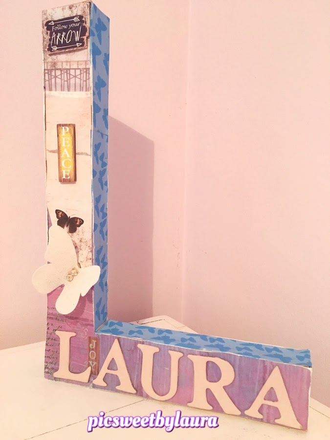 Esta letra la decoré con los restos de papel y demás que tenía por casa.