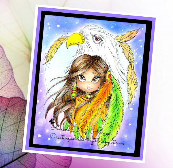 Es momento de otro reto en el blog Creatalicious Challenge blog. Esta semana estamos usando los adorables sellos digitales de Lacy sunshine, Yo use el que se llama When Eagles Soar Indian Maiden.