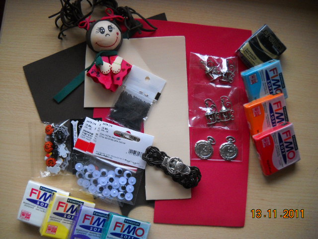 Compré algunas cosillas, botones de ojos ,colgantes para montar bisuteria, fimo para practicar... e hice un Taller de Fofuchas, que hace tiempo tenía ganas de aprender, mi hija lo hizo de pulseras.