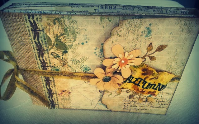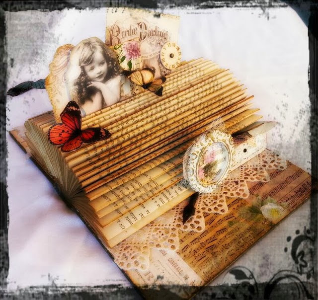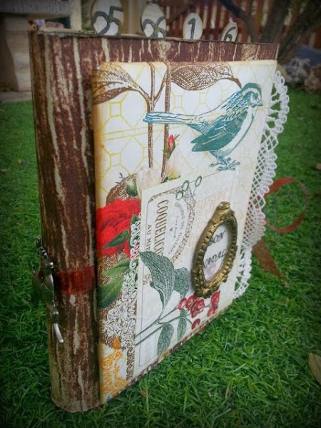 Una base muy tentadora: un libro viejo, en el que colocar adornos y detalles vintage, para enmarcar todas esas cosas que podremos ir cambiando según vayan sucediendo.... un ratito en el relajaremos y disfrutar...dejarnos llevar y crear, para llevarnos a casa un trabajo que no nos cansaremos de mirar.