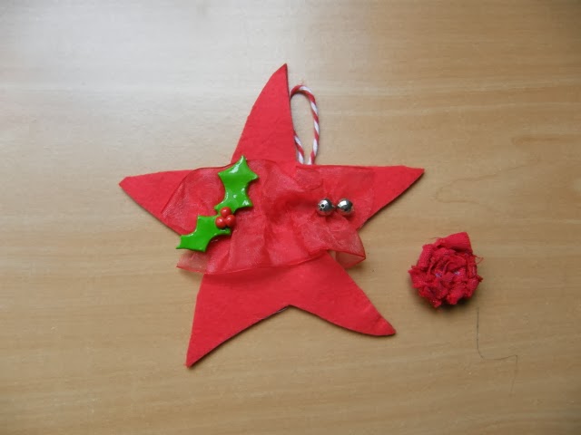 Por la tarde quedamos con otras amigas a tomar un cafetito y tuvimos regalo sorpresa y misterioso.....alguna participante del intercambio de Navidad nos regalo una precioso estrella a cada una de nosotras, el broche es de Rosa-Rosae.