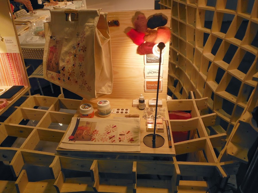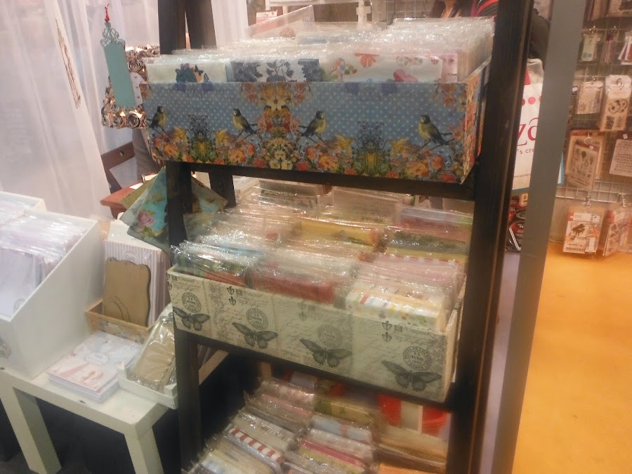 Y ya dentro, una maravilla, montones de telas, papeles, troqueles, adhesivos, etc. Pero para no aburriros, os pongo unas cuantas fotos mas.