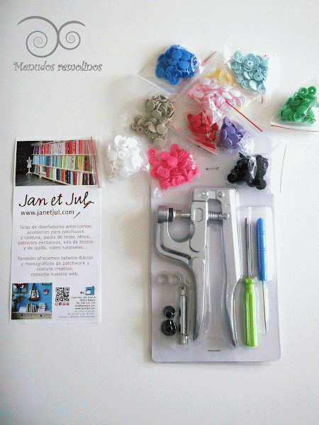 No pude resistirme a uno de sus patrones para hacer una mochila infantil, ni a comprar, por fin, el pack de snaps de colores y plier. Tengo que aprender a usarlo y otro día os cuento qué tal va. Estoy como una niña con zapatos nuevos con él.