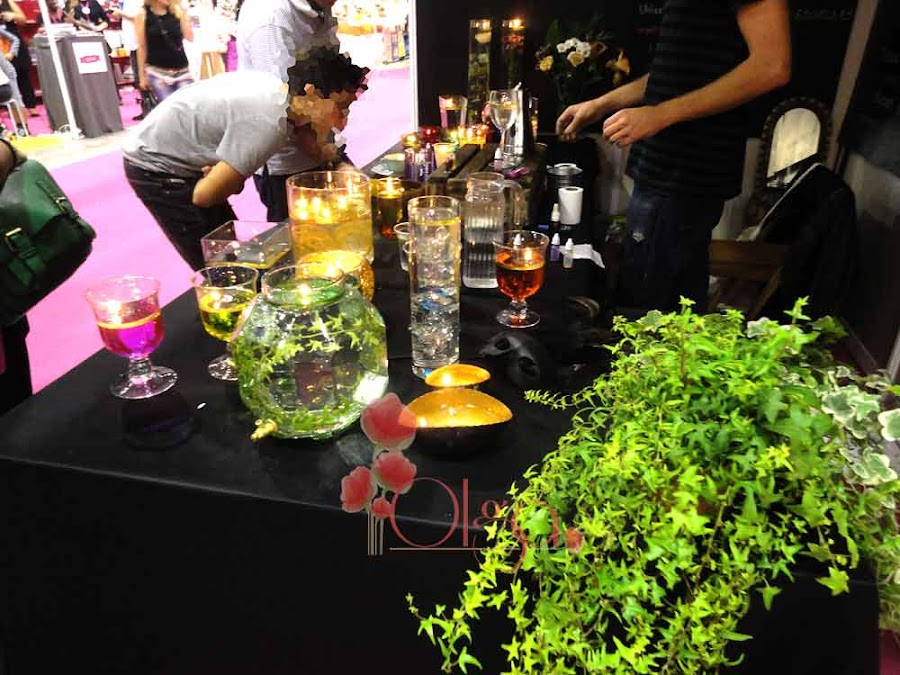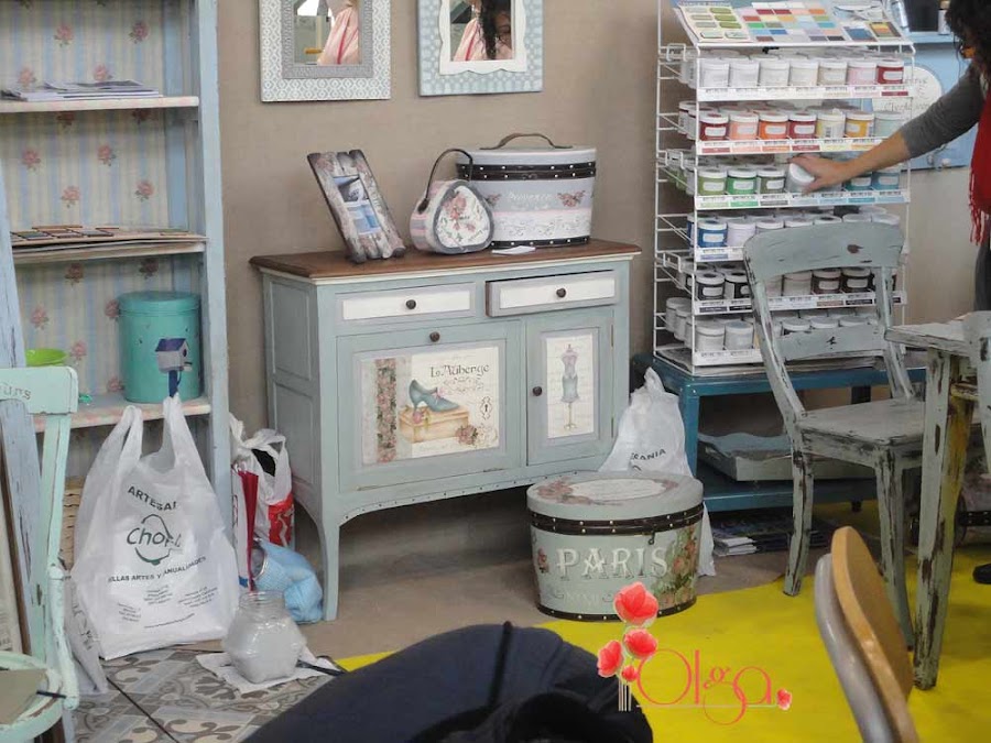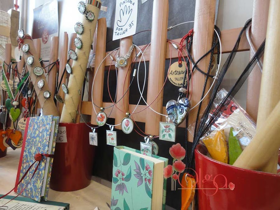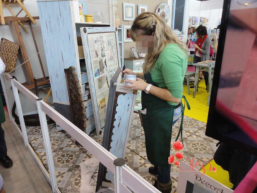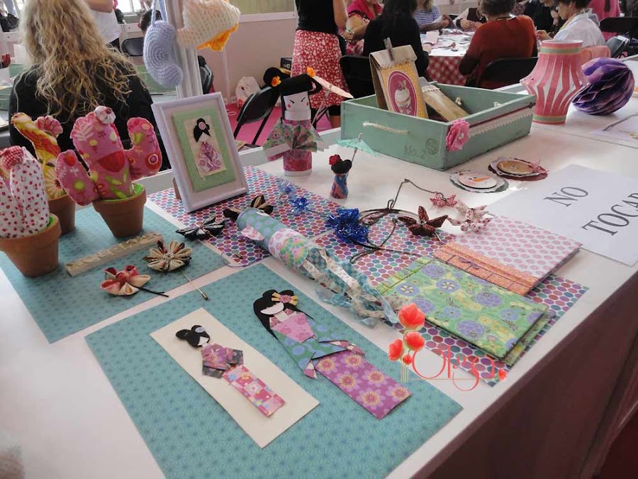 Cuando llegamos, en un stand aparte, más retirado del resto de la feria, había dispuestas tres mesas con todo ya preparado. Fuimos entregando nuestro justificante de pago e íbamos pasando, claro, ni te decían cual era tu mesa, como evidentemente todos nos apuntabamos al taller de la más famosa, pues todos nos sentábamos en la misma. La profe no decía nada, yo por si los acasos, saludé, que a mi me han enseñado a ser educadita.