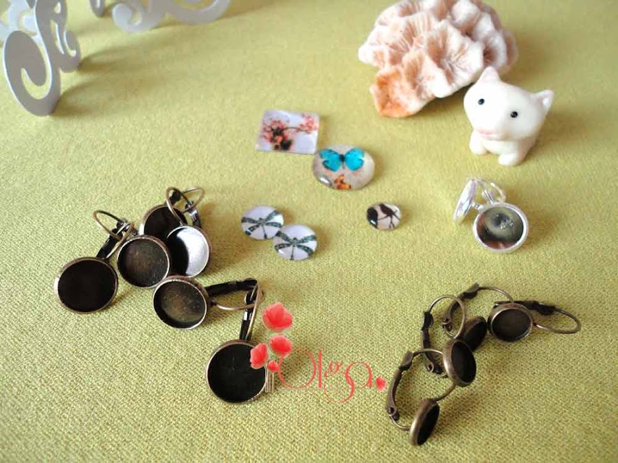 Bases para pendientes y gotas auto adhesivas con modelos naturales, pajaros, mariposas, libélulas y un cerezo