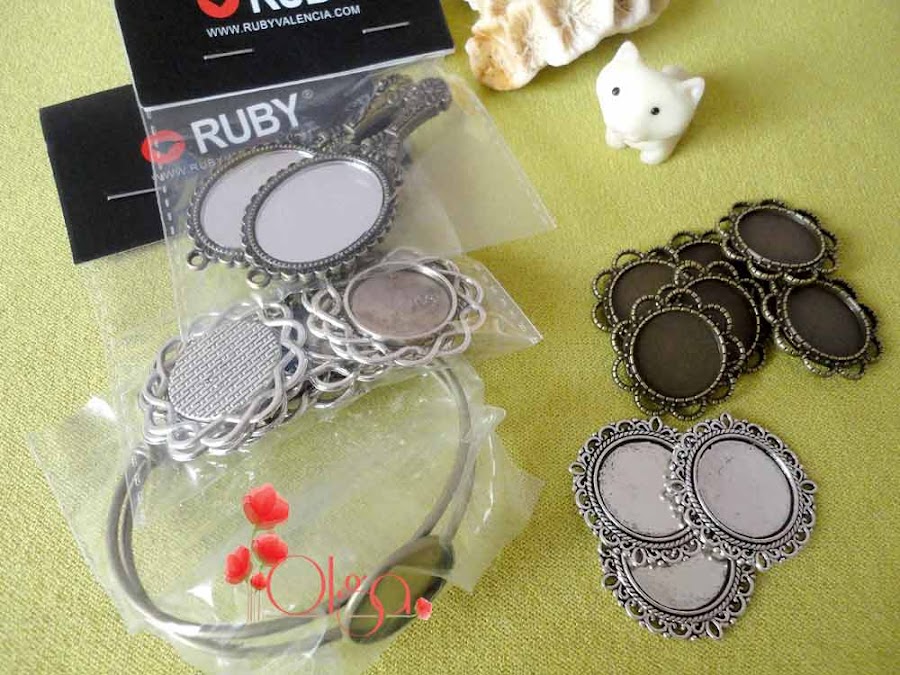 Mas bases de camafeos, una base para pulsera, un par de espejitos en bronce envejecido