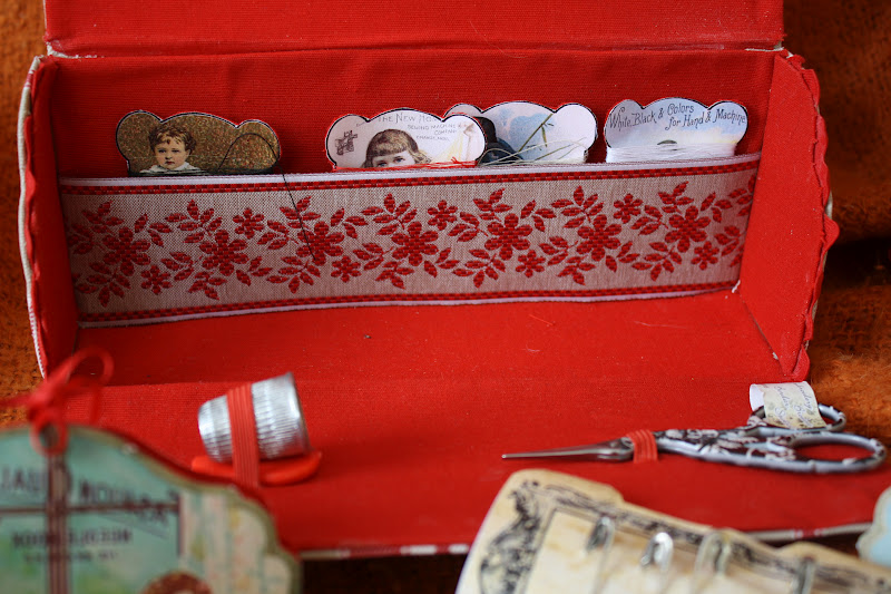 El galón precioso, donde están los cartones de los diferentes hilos. Su dedal, enhebra agujas, y una tijera de bordar de la que me encapriche y que me regalo mi tata.