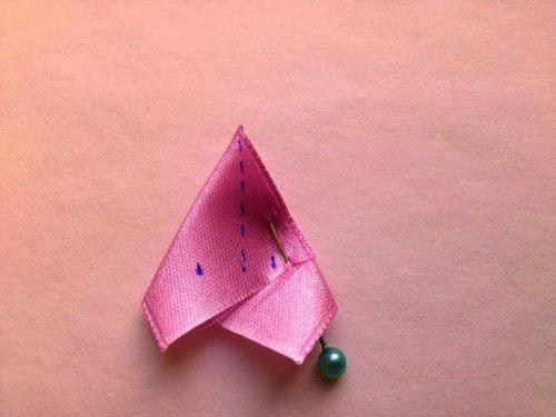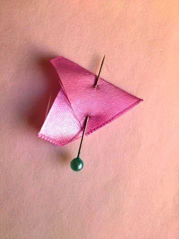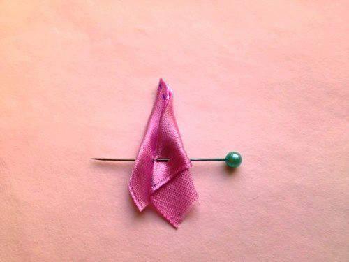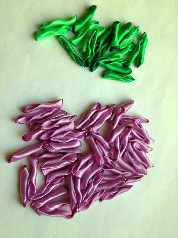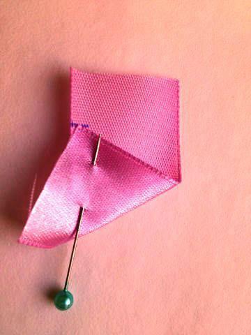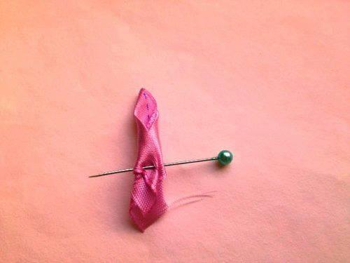 Para este proyecto usaremos la cinta de 2,5 cm de ancho. Los cortes de cinta para los pétalos tienen 5 cm de largo.