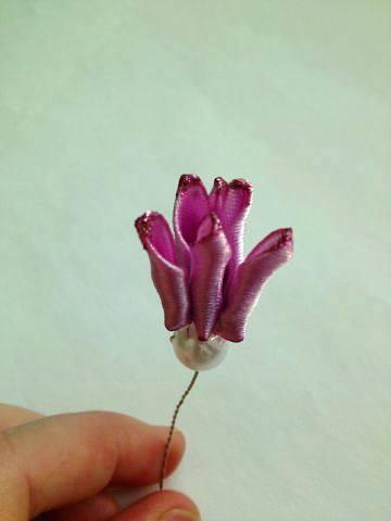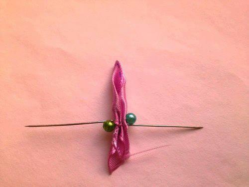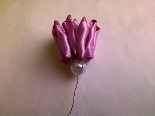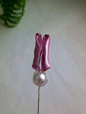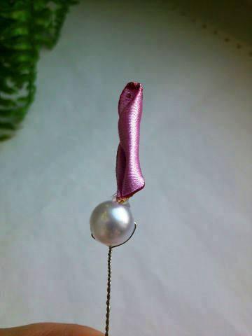 En un alambre con perlita o canica empezamos a pegar los pétalos con la silicona caliente.