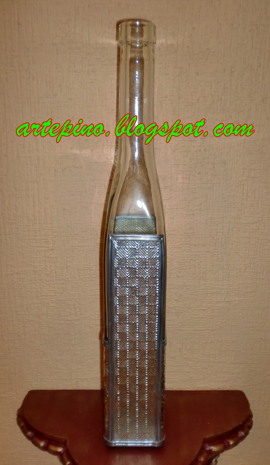 Si te gusta el reciclaje seguro que los guardas todo con la excusa de "ya veremos como lo aprovecho". Pues bien, esas botellas de cristal de diferentes bebidas que ya de por sí son decorativas vamos a convertirlas en un verdadero objeto de decoración. Yo he utilizado una botella de whisky de una conocida marca de Tennessee que por su forma cuadrada y decoración en relieve es ideal para e ...