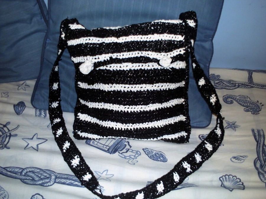 Egabrense fue quien inauguró en el foro este reciclaje, encandilando a todo el mundo con trabajos insólitos. Como podemos apreciar, el efecto de combinar bolsas de diferentes colores da un atractivo muy juvenil a los complementos. A menudo basta con tejer sin más, ya que muchas bolsas se imprimen en varias tintas.