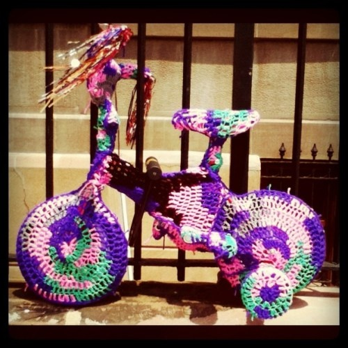 El + 1 va a parte porque me ha inspirado especialmente. ¿Sería posible enfundar en crochet no sólo a la bici si no también al niño? Por seguridad...