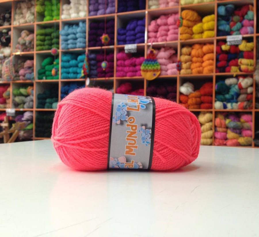 Para este gorro usé aguja 4.5mm y lana nachito bb. Es la más barata de LHO, a veces trae ésta etiqueta: