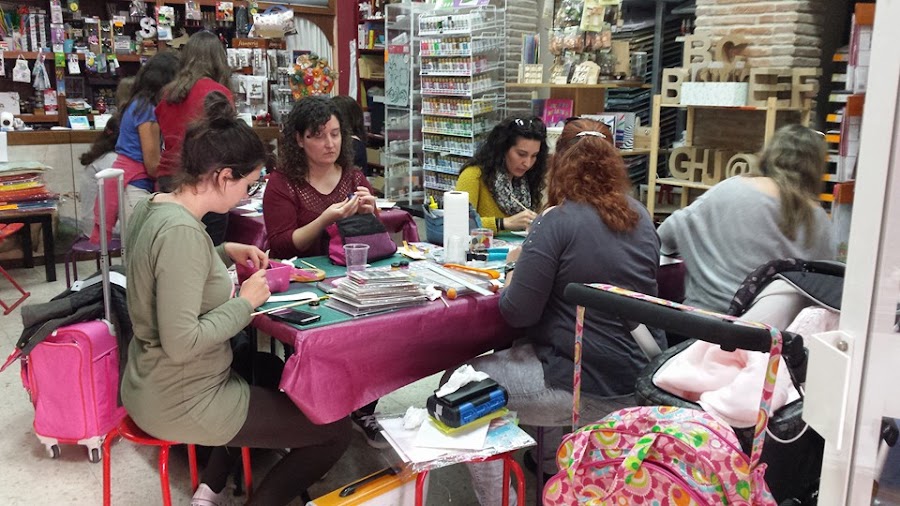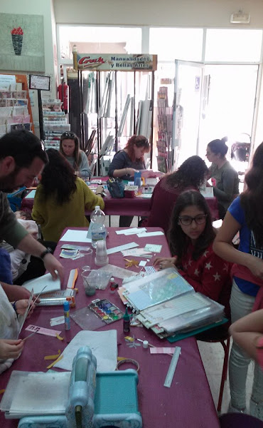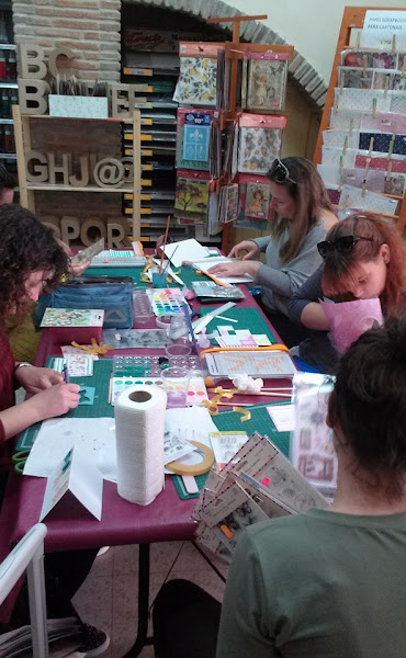 Ese día algunas locuelas del scrap y algunos de sus polluelos nos reunimos para hacer tarjetas y puntos de libro en la tienda Rosa Cruz Manualidades, quien con mucho cariño montó un espacio muy agradable y puso a disposición todos sus materiales y herramientas para la ocasión. !!Gracias Rosa!!