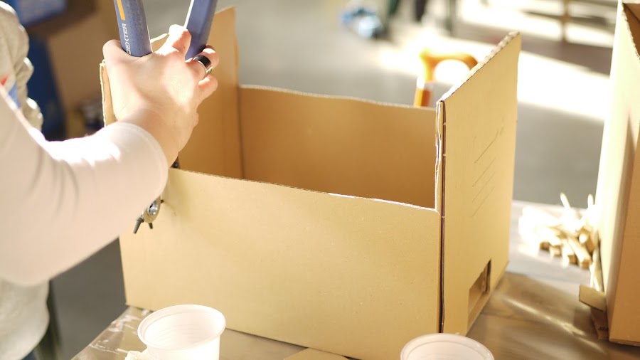 El primer turno fue crear un futbolin, reciclando una caja y convirtiendo unas pinzas en unos defensas geniales.