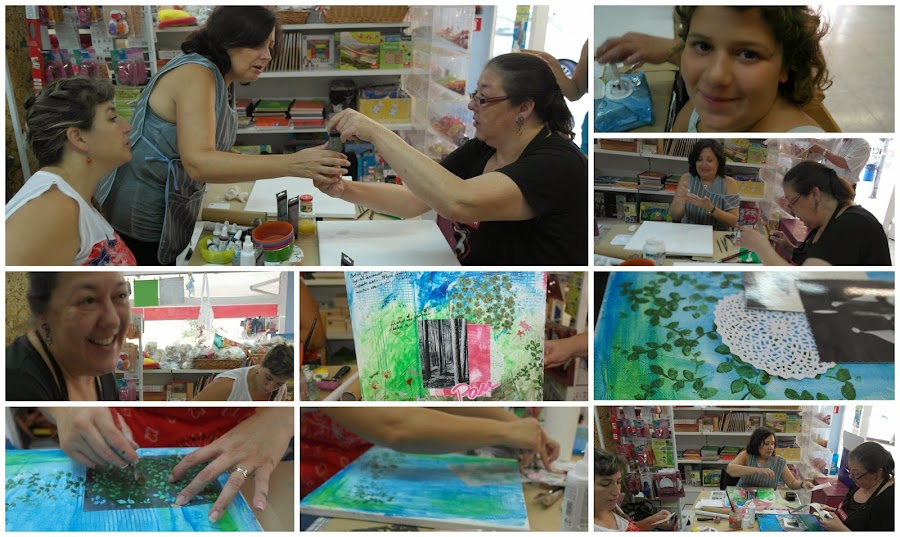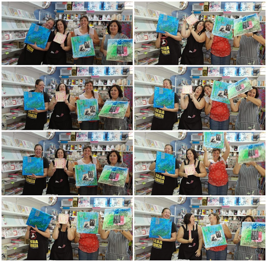 El Mixed-media es una de mis técnicas favoritas...la verdad que pasamos una mañana muy entretenida y divertida, me encantó ver como las chicas disfrutaban a tope experimentando y haciendo sus creaciones a su gusto. En estos talleres principalmente, pretendo que se lo pasen bien, que experimenten con materiales y técnicas que no hayan utilizado o que no tengan mucha práctica en ello. Aunque el resultado es importante, para mi, lo es mas, el proceso, quiero que se sientan agusto utilizando los colores o diseños que más les gusten, que no se sientan presionadas por la muestra que ven. Y de echo la mayoria de las veces el resultado es muy interesante, gracias a la tranquilad, confianza y creatividad que hay en el proceso.