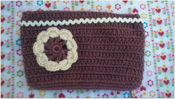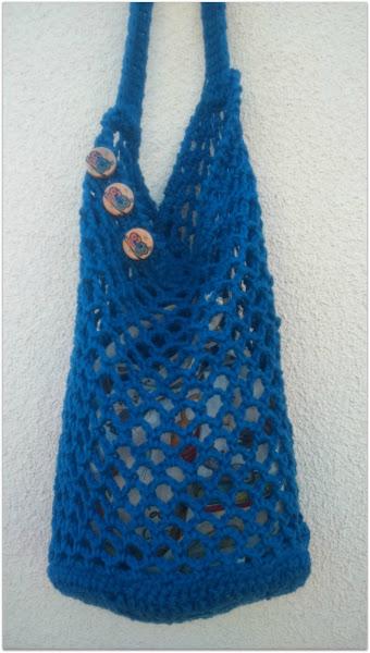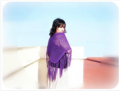 Los tres patrones son: el bolso escondido azul, el chal morado en pico con borde fantasía y un monedero playero .