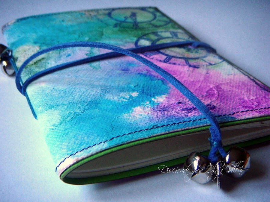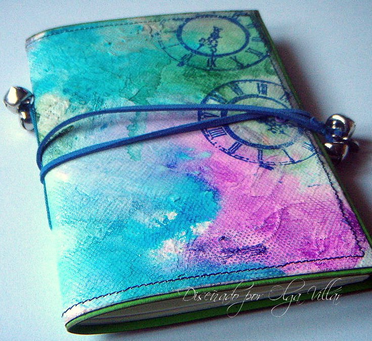 Este cuaderno lo llevo siempre en mi bolso, porque lo utilizo como muestrario de color, de todas mis " pinturas", desde acuarelas líquidas, rotuladores Pantone, rotuladores Tombo, etc.