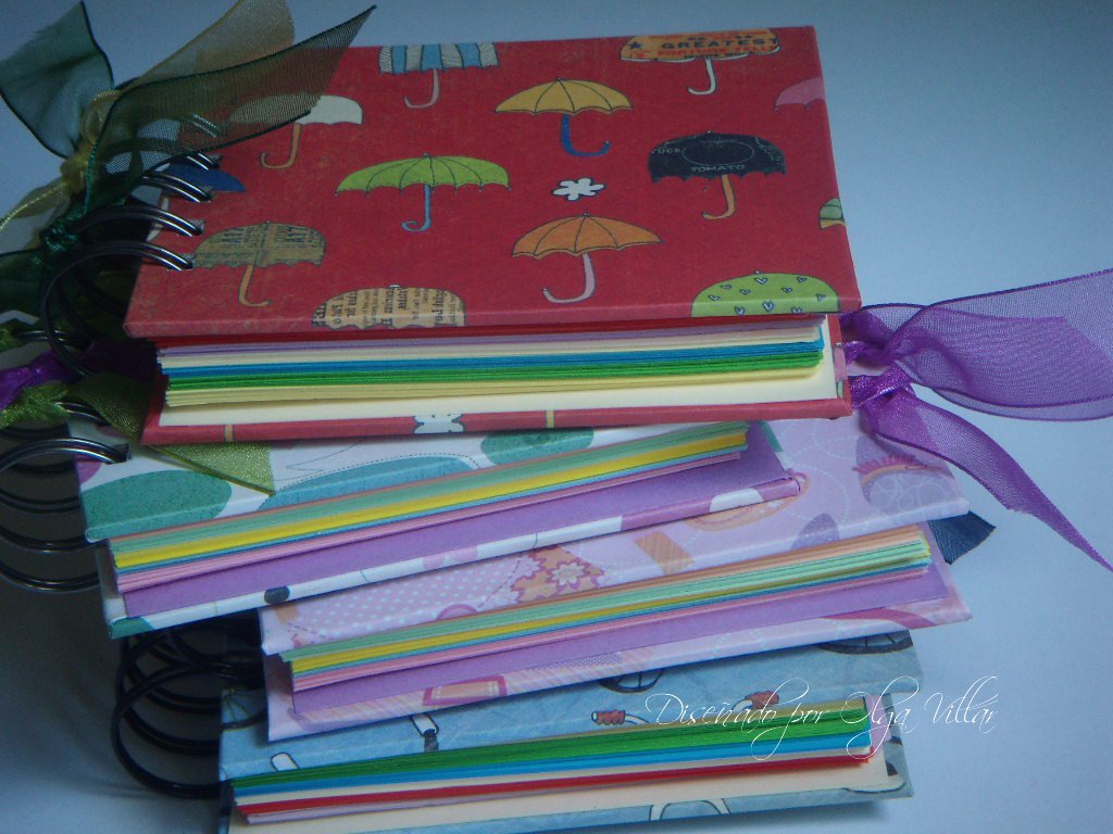 Son unos cuadernos preparados para el cumpleaños de una niña , con un tamaño de 10 x 10 cm, y las hojas interiores llenas de color.