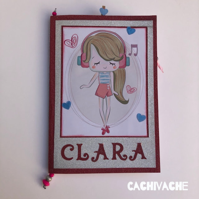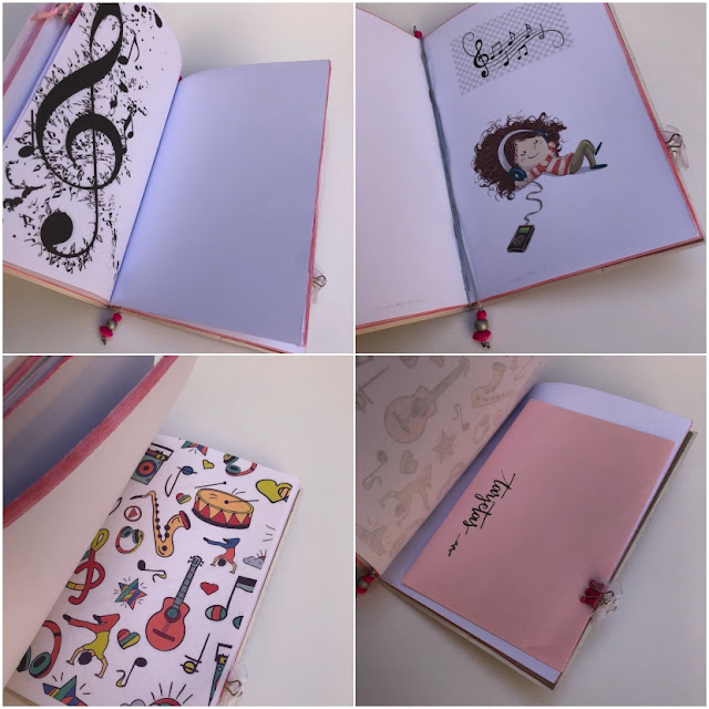 Este año pasado era su comunión y uno de los regalos elegidos fue un cuaderno personalizado y creativo dedicado a la música... Así que este es el detalle elegido para su portada....