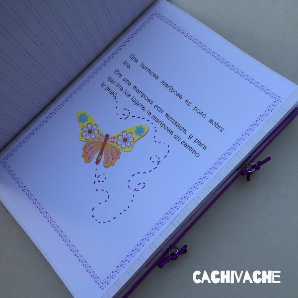 Así que para ella el cuaderno creativo tiene mariposas, frases, puntillas, papeles decorados...pero sobre todo un espacio para que ella lo llene con toda su magia y personalidad.