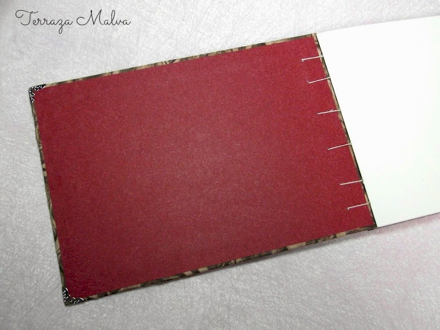 En las guardas he utilizado un papel de fibras de color rojo que da un bonito contraste con el papel del exterior.