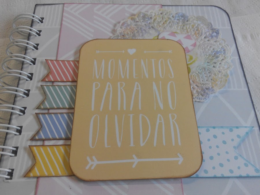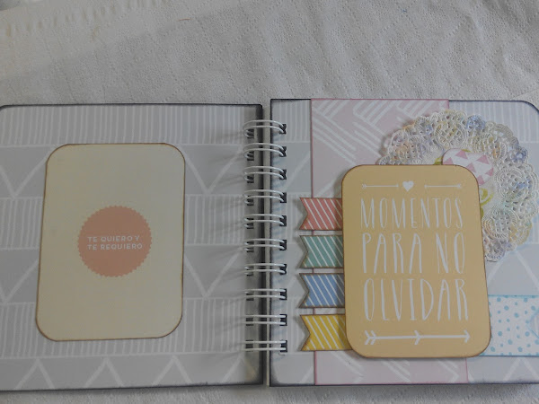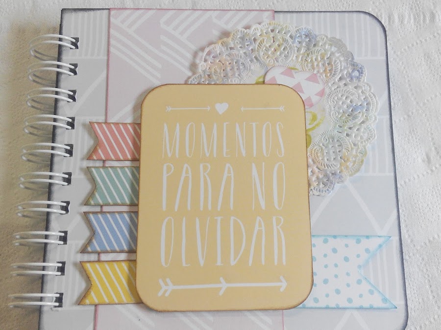 El cumple de mi amiga Lago fue hace poco y como complemento al regalo que le hicimos entre todas las amigas, decidí hacerle un cuadernito, sencillito, para que ella anote sus cosas, recetillas, pensamientos, propósitos, sus "por hacer", o, como dice la portada, sus "MOMENTOS PARA NO OLVIDAR"... en fin, lo que ella quiera!