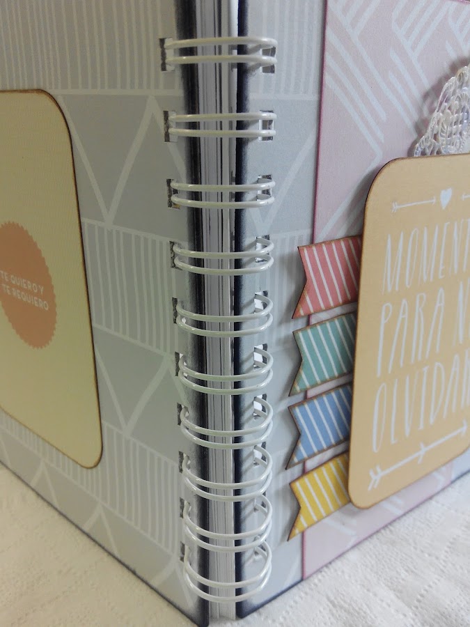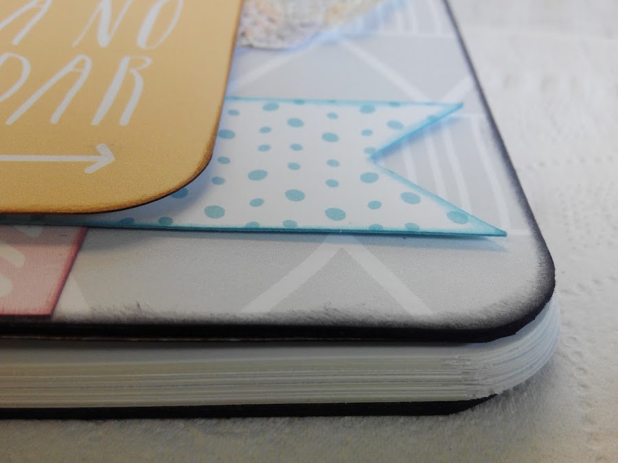 El cuaderno mide 15x15 cm y está decorado con papeles de Mr Wonderful, que me encantan.